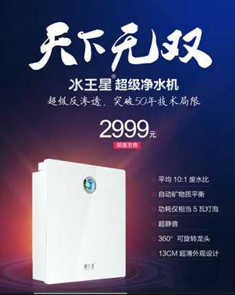 有趣的是,就在小米凈水器推出后不久,水王星根據“超級反滲透技術”研發的“S1超級凈水機”也與消費者見面了。曾有業內人士問水王星創始人劉志奇,你的“超級凈水機”不幸遭遇了小米凈水器,面對小米凈水器的熱銷你怎么看。