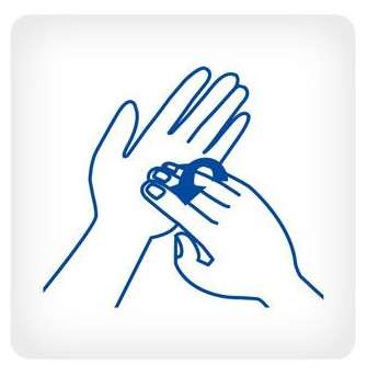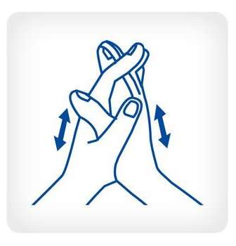 將雙手手指互相扣緊,兩手指肚緊貼,左右揉拼十下,將指肚徹底清潔。