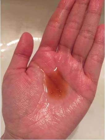 一位試用者陳先生主動向記者提供了他的試用的兩款產品,SEAGREEN抑菌洗手液和SEAGREEN果蔬專用清潔劑,兩款清潔劑都呈褐色而不是我們日常生活中接觸的無色透明質地。