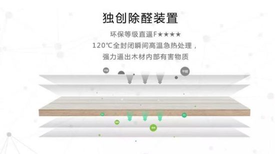 ?環保標準直逼F★★★★120℃全封閉剎那間高溫急熱處理,強效驅走木材里面有害物,呼吸原木芳香;獨創性專用于板材的精細除醛設備,完全分離板內苯類游離態成份;健康就是從大自然中來,不留有絲毫傷害,回贈你一片誠心和期望。