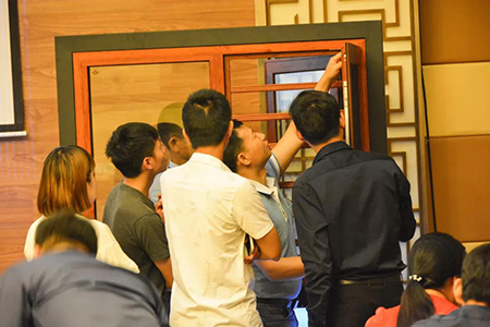 好的產(chǎn)品,能不能賣得好,離不開好的銷售員。而好的銷售員,必須要對產(chǎn)品了如指掌,才能更好的為消費者提供服務(wù),才能促進成交率。優(yōu)冠門窗技術(shù)主管吳志滔對學(xué)員們進行了(鋁門窗產(chǎn)品知識)培訓(xùn)。吳主管通過現(xiàn)場實物生動的講解,簡練的分析了每款產(chǎn)品的典型特征,便于學(xué)員們記憶和應(yīng)用到終端銷售服務(wù)中,全面提升大家的簽單能力。