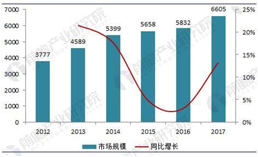 門窗行業(yè)市場規(guī)模自2012年以來便呈現(xiàn)跳躍式增長,2017年達(dá)到6605億元,目前門窗行業(yè)銷售利潤率保持在10%以上。