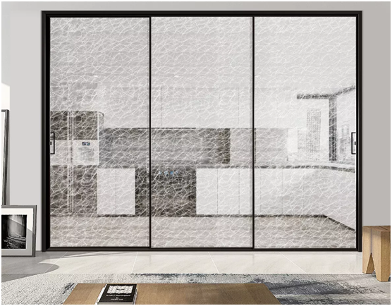 依靠成熟的門窗生產工藝,宇技優品打造了自豪的夾絲玻璃系列——宇凱16窄邊推拉門,夾絲圖案花樣多,如(表面)壓花或磨光、(顏色)透明或炫彩、(圖案)水墨花鳥或山水等。