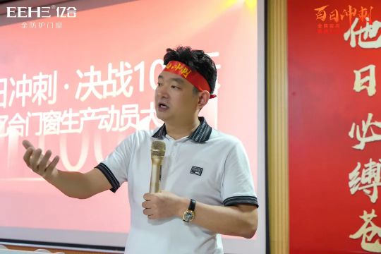 為激勵(lì)大家更飽滿的激情、更加昂揚(yáng)的斗志,助力“20天交付突破行動(dòng)”順利開展,億合門窗總部隆重召開了“百日沖刺”生產(chǎn)員工動(dòng)員大會(huì)。億合門窗董事長曾奎、副總經(jīng)理朱大均等領(lǐng)導(dǎo)、生產(chǎn)中心全體班組管理人員及員工代表共同出席會(huì)議。