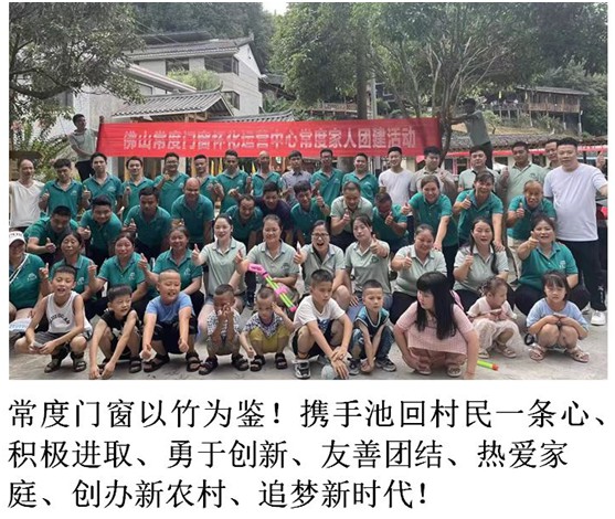近日,常度門窗積極響應(yīng)池回村委的號召,為池回村創(chuàng)清廉村居示范點獻計獻策、添磚加瓦,向村委提供“佛山常度門窗懷化運營中心常度家人團建活動”的照片,并配文“常度門窗以竹為鑒,攜手池回村民一條心,積極進取,勇于創(chuàng)新,友善團結(jié),熱愛家庭,創(chuàng)辦新農(nóng)村,追夢新時代”。此舉動,展現(xiàn)出振興鄉(xiāng)政企業(yè)代表該有的責(zé)任和擔(dān)當(dāng)。常度門窗正在用自身的影響力,帶動更多企業(yè)、社會組織及個人感恩社會,回報社會,以實際行動助力鄉(xiāng)村振興!