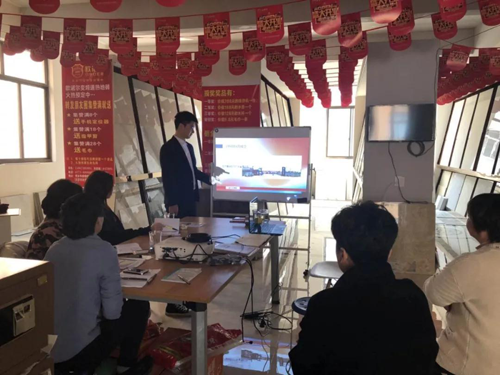 冷老師講課充分帶動店員的學習熱情,學習基礎產品知識后,采取問答形式,讓桐鄉團隊對升華陶瓷新產品、瓷磚風格應用、店面銷售具有深刻的認知,通過系統專業知識學習和銷售場景的模擬,提升學員的應變能力,深度掌握產品賣點、話術等專業知識的運用,使每位學員都能高效、快速的簽單。