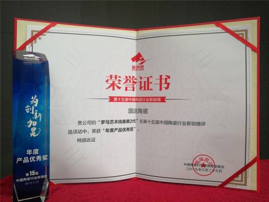 3月29日,由中國陶瓷工業協會和陶城報社主辦的第十五屆中國陶瓷行業新銳榜頒獎儀式在佛山舉行,國達陶瓷品牌榮獲“年度產品優秀獎”稱號。
