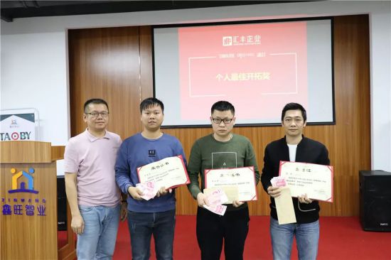 接著,大會(huì)對(duì)12月銷售業(yè)績(jī)優(yōu)秀的人員進(jìn)行表彰。榮獲“個(gè)人最佳業(yè)績(jī)進(jìn)步獎(jiǎng)”與“個(gè)人最佳開拓獎(jiǎng)”人員分別上臺(tái)領(lǐng)取獎(jiǎng)金和證書。