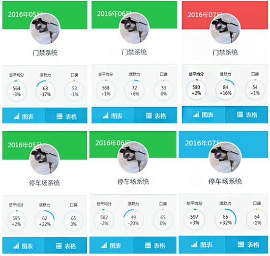在安防行業中,出入口控制系統算是安全防范的第一道閘門,其包括了常見的門禁一卡通以及停車場管理。在千家品牌實驗室對出入口控制7月份各品牌的監測結果上,門禁系統和停車場系統的總平均分增幅分別達到了2%和3%,結果看似不錯。(見圖一)