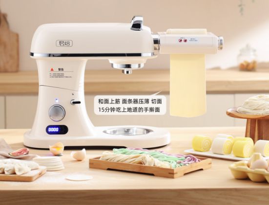 我們的廚師機因為帶有擴展功能,因此機頭會比一般的廚師機更長一些,所以我們廚師機在左右兩側都設計了限位塊,用來限制機頭大幅度移動,因此,有極個別的用戶反應揉面過程中會有金屬“噠噠”聲,這是因為面團成型時產生的阻力擠壓帶來的,只需要對限位塊位置提前做一點養護就能完美解決。