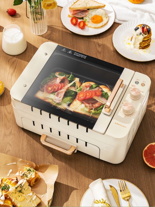 機(jī)器提供燒烤、烘烤等多種模式選擇,想來(lái)一頓豐盛的晚宴,換上配套的烤盤,烤雞翅、烤魚不在話下,還能用來(lái)煎牛排;下午茶時(shí)間,享受一段美味的烘培時(shí)光,裝上烤網(wǎng),烤面包、烤蛋撻,烤箱能做的它也能做。一機(jī)多能,烹飪料理無(wú)難度。