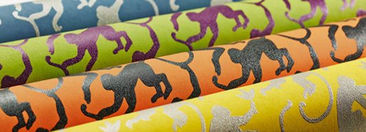 柔然壁紙《A Shade Wilder/火烈鳥》系列中動物類的設(shè)計強調(diào)生命的運動性,其核心為Quirky Conversational,這些小猴子有的是成雙成對的竊竊私語,有的是則是成群結(jié)伴歡樂嬉戲,自由自在,好像在告訴我們只要喜歡就好,就做真我的自己,沒有習俗的困擾,沒有學院派的原則。整個色彩搭配有視覺沖擊力,可以瞬間成為你的焦點。