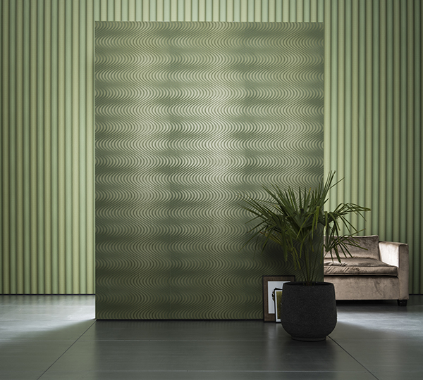 綠洲的主題,讓我們感覺(jué)靜謐、清新,適合在餐廳、客廳、書(shū)房等空間使用。這個(gè)主題中,德國(guó)瑪堡壁紙亮相的是由世界著名設(shè)計(jì)大師路易吉·克拉尼操刀設(shè)計(jì)的《傳奇》系列壁紙。