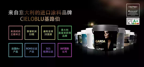 Cieloblu基路伯是意大利原裝進口的高端涂料品牌,Cieloblu基路伯從誕生之日起,就立足于高品質產品、精致化的服務,滿足時尚化、藝術化的個性追求!目前,基路伯藝術漆“羅馬之戀”、“米蘭印象”、“卡薩諾瓦”等藝術涂料產品系列在歐洲享譽盛名!“伊甸園全房A+”、“藍天使童畫”、“埃斯特智臻”等墻面涂料系列也深入人心!