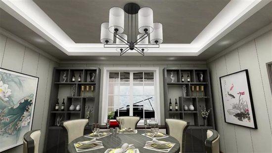除了在客廳上,餐廳上用藝術涂料涂刷也是別有一番滋味,質感柔和、經久耐看,紋理自然且不張揚,有效提升空間檔次,配合特選的吊燈效果更呈現了出色的家居藝術質感。