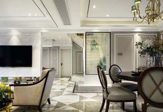 客廳往往意味著著房子的門臉,這里一般是主人招待賓客的地點(diǎn)。客廳一般宜用淺色,讓賓客有眼前一亮的感覺,使來賓消去一天奔波的疲憊。背景墻選取純白色的磚藝愛覺藝術(shù)涂料品牌干凈利落,底下的柜子采取了溫和的木材質(zhì),和白色搭配一起,簡(jiǎn)潔明快。