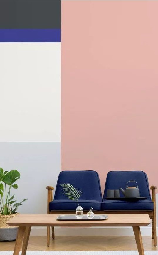 色塊拼接是一種兼容的色彩手法,能夠把你喜歡的顏色統統“上墻”。在視覺上,色彩拼接會讓人感覺非常明快,有現代摩登感。