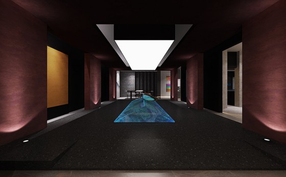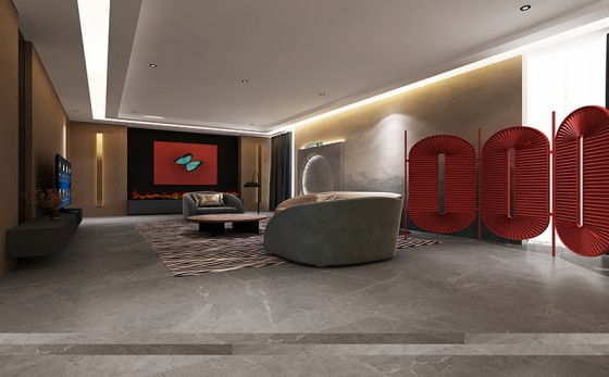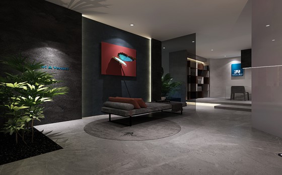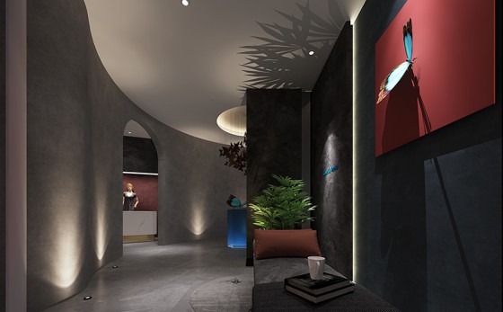 半圓或圓形的裝飾墻都巧妙運用中國流行的圓通柔和設(shè)計,經(jīng)典的中國紅把高級灰冷色調(diào)瞬間撼動,仿佛太陽的血在云海和太空中漫開,映現(xiàn)出壯麗的血紅。使空間冷曖相宜,舒適而愜意,精致而高雅。