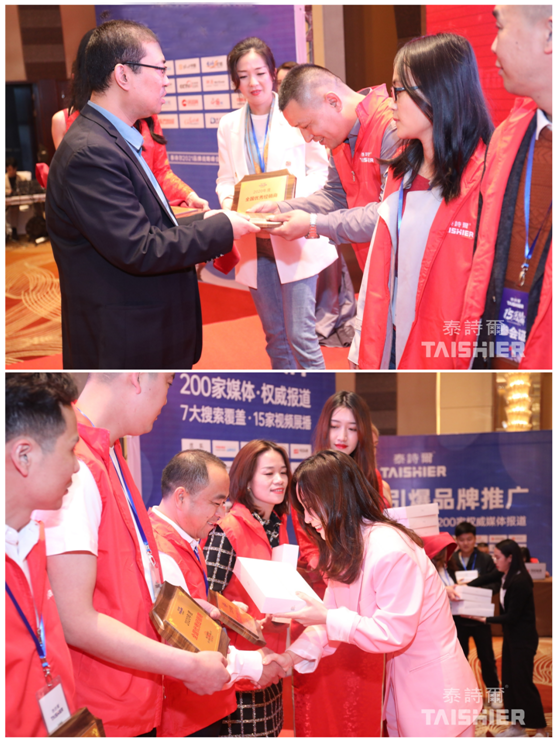 接下來會議進入眾人期待的環節——優秀經銷商頒獎與分享。企業的發展離不開經銷商的努力奮斗,在泰詩爾就有這么一群有激情有想法的經銷商家人,他們在自己的崗位上勤勉耕耘,無私奉獻,用自己的忠誠與熱血,澆灌出了泰詩爾的碩果累累,他們是泰詩爾突圍市場的前鋒隊員。本次會議表彰優秀的經銷商,感謝他們為泰詩爾未來發展樹立標桿與榜樣,并邀請他們分享成功的經驗。