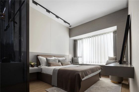 臥室整體色調(diào)素雅大氣,簡(jiǎn)潔的收納設(shè)計(jì)顯得輕盈而不繁重,視覺美感與實(shí)用功能兩相融合。