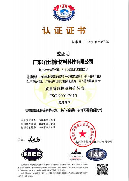 好仕迪以綠色環保為導向,以質量管理為基礎,以精細化服務為原則,所有產品采用水性環保材料,達到GB18582-2020國家標準,環保凈味、安全無毒,嚴密監控生產流程,嚴格控制涂料的質量,產品通過法國A+認證、SGS認證等。