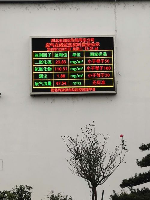 據悉,陶瓷行業的《綠色工廠》申報能否順利,關鍵在于工廠廢氣排放量,記者探訪亞細亞瓷磚湖北產業基地時發覺,工廠推行廢氣排放實時在線監測。按照監測排放數據所顯示,二氧化硫23.83mg/m3、氮氧化物110.31mg/m3,粉塵1.88mg/m3,基本上完成無白煙,三項內部控制指標均好于《〈陶瓷工業污染物排放標準〉(GB25464—2010)修改單》。