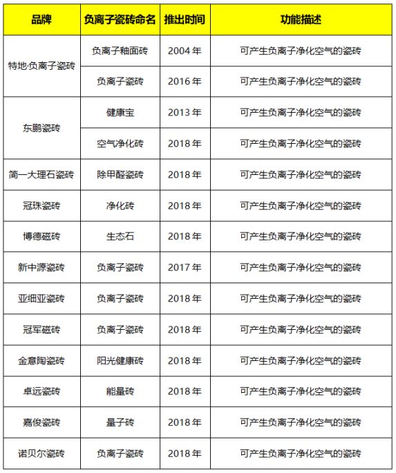 負離子瓷磚最早的發明者是特地·負離子瓷磚,第一個擴充負離子瓷磚品類的巨頭則是東鵬瓷磚,以及還有無數帶有負離子功能瓷磚品牌,它們凈化空氣的效果經得起科學論證,但靠譜君可要提醒個事兒,正是負離子瓷磚對凈化空氣真的有效,可負離子卻無法憑借肉眼感知,各類商家對消費者傳達的負離子的概念也千差萬別,這對廣大消費者認知負離子瓷磚產生了一定的影響。
