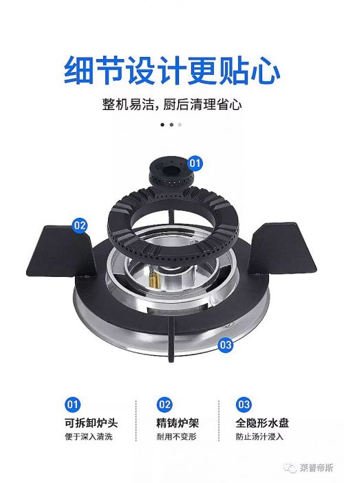 萊普帝斯優質分火器,噴出的火焰分布更均勻,防止大火焰外擴而造成能量散失。這樣的設計讓灶具更節能,火力分布更加均勻更聚焦,爆炒自然不在話下。加上防爆黑晶面板設計,醬汁等污漬一擦即凈,易清理。