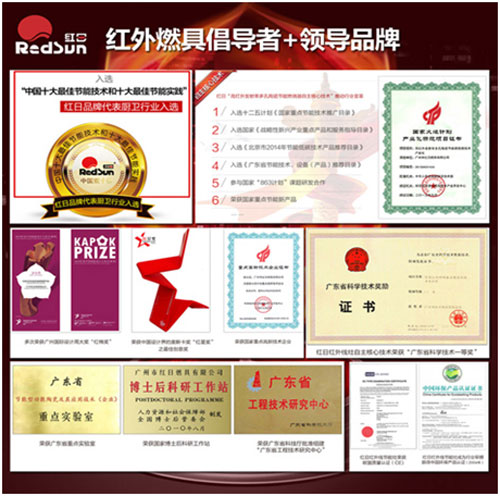 ▲ 獲獎(jiǎng)無數(shù)的紅日“高紅外發(fā)射率多孔陶瓷節(jié)能燃燒器技術(shù)”