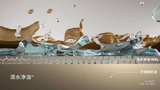 探討其原理,是“清水凈油”技術(shù)能使煙機(jī)鋼板表面有著極強(qiáng)親水性,水可輕輕松松滲透到油污與鋼板表面中間,令油污浮起,所以水擦洗就可清除油膩,讓繁雜的抽油煙機(jī)清洗,馬上顯得跟“卸妝”一樣輕輕松松簡單。