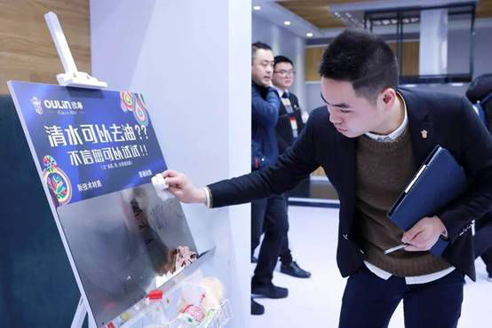 消費(fèi)者現(xiàn)場體驗(yàn)“易清潔”技術(shù)演示