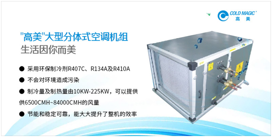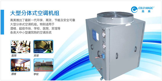 如今的高美經過多年的研究及技術積累,推出了最新一代的環(huán)保、高效、節(jié)能及安全可靠的大型分體式空調機組。該機組用途廣泛,特別適用于別墅、賓館、超市、商場、酒店、餐廳、學校、醫(yī)院、辦公樓、展廳等空調場合。