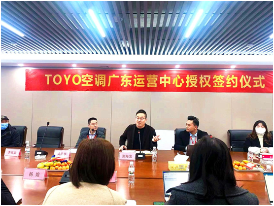 簽約儀式上,廣東幸福樹電器銷售有限公司執行董事長楊煌先生與TOYO東洋空調全國營銷總經理張海龍先生作為雙方企業代表進行合作簽約,成立廣東運營中心,目標年任務達成一億銷售規模。