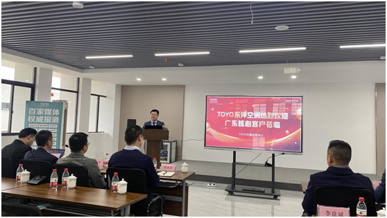 “TOYO-從此不同”2022年TOYO東洋空調廣東運營中心廣東幸福樹銷售有限公司核心商家赴廠參觀交流會正式開始。首先津晶企業集團董事長江國民先生發表講話,江董先后分享津晶企業介紹、集團發展歷程以及集團獨創的四維一體模式。他表示:今年,是津晶企業集團發展規劃的攻堅之年。為深度開拓廣東重點市場,集團大力打造專業團隊、引進高端人才,相信在我們的團結拼搏和共同努力下,一定會實現TOYO東洋空調在廣東市場的蓬勃發展。