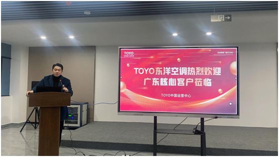 TOYO東洋空調廣東運營中心廣州幸福樹銷售有限公司執行董事楊煌先生對此次參會的客戶表示熱烈的歡迎,并對集團總部領導的支持表示感謝。他提出未來市場的變化瞬息萬變,機遇與挑戰并存,好的品牌、好的服務、完善的團隊將是打贏市場必備的條件。TOYO東洋空調是國際品牌,在超級智能工廠以及售后服務體系的支持下,有信心也有決心服務好更多的經銷商和消費者。