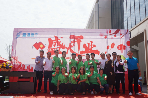 周董(右一)與莫總(右四)以及香港寰宇直營店(全屋定制體驗館)工作人員合影