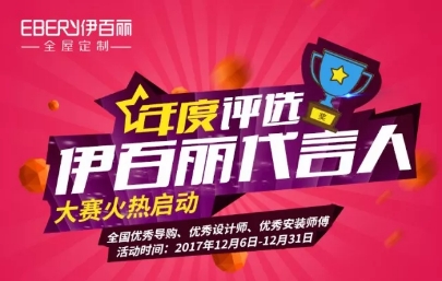1月3日,“伊百麗代言人”全國(guó)評(píng)選活動(dòng)正式公布獲獎(jiǎng)名單,共30名家人分別獲得“全國(guó)優(yōu)秀導(dǎo)購(gòu)”“全國(guó)優(yōu)秀設(shè)計(jì)師”及“全國(guó)優(yōu)秀安裝師傅”的殊榮。