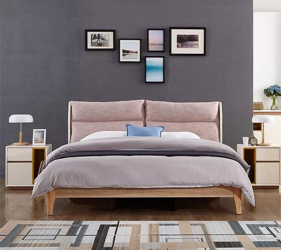 在掌上明珠家居看來,臥室的設(shè)計不需要雜亂和復(fù)雜。更重要的是,它要創(chuàng)造一個輕松、無壓迫的生活環(huán)境。畢竟,安靜溫和的氛圍有助于帶來更好的睡眠。因此,簡單的布藝軟包靠背床頭,加上易于觸及的儲物床頭柜,可以輕松消除疲勞。