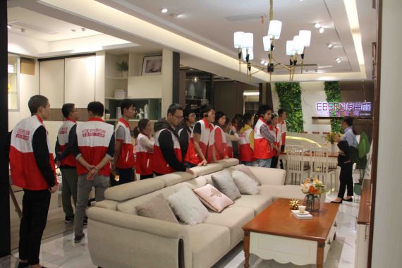 快速了解伊百麗全屋家居產品的方法,除了聽老師的產品培訓課外,就是親自參觀伊百麗展廳了。所以每一期新員工的培訓,必不可少的環節便是組織參觀展廳,也是為了讓新同事直觀感受到伊百麗全屋家居產品的魅力。