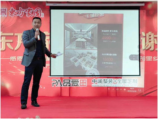 其中,品愛全屋定制市場經理楊健全先生在臺上的一番演講,博得了場下業主們的熱烈掌聲。楊總從品牌影響力、產品優勢、本次活動的優惠政策等方面著手,向業主們展示了品愛全屋定制高端的品牌形象。