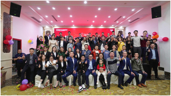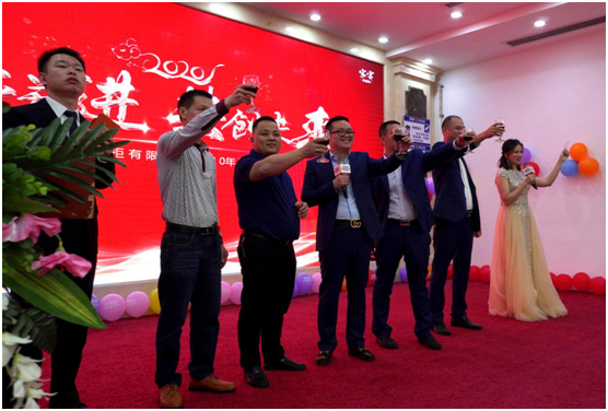 在一片祝福聲、熱烈掌聲、禮炮聲中,晚宴正式拉開帷幕!美佰利總經(jīng)理潘宇青先生帶領(lǐng)各高層領(lǐng)導(dǎo)一起上臺祝酒:感謝美佰利家人們2019年的奮斗,感恩家人們的堅持與付出。