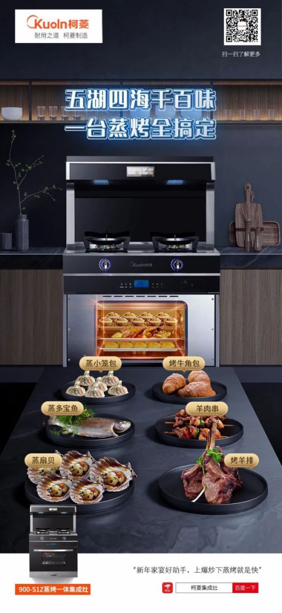 在家實現便捷吃飯并保障安全健康,成為年輕上班族的需求之一,快速的工作和生活節奏壓縮了當代年輕人的下廚時間和烹飪步驟,可以實現方便、宅家、健康等各種要素的共存的輕烹飪已然是不可避免的趨勢。讓年輕人能夠嘗試親手烹飪的快樂。與食材對應的是做飯工具的改變。在 90 后的廚房里,蒸烤箱地位可能已經超過炒鍋,方便、快速、智能,最好還要健康,柯菱蒸烤一體集成灶可以完美滿足當代年輕人對食材和廚具的新要求。