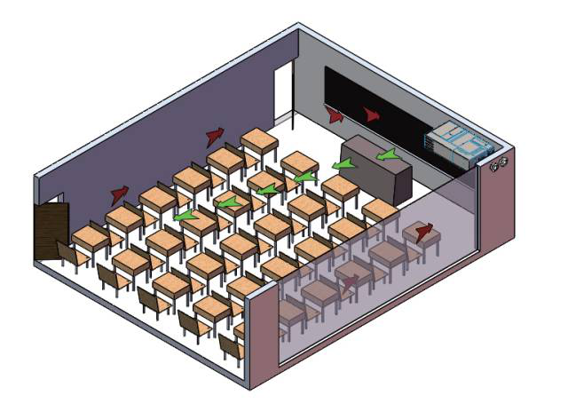以新風(fēng)機(jī)為核心,通過管道,將室外新鮮空氣引入,將室內(nèi)污濁空氣排出,完成教室內(nèi)的空氣置換。康舒室酷標(biāo)配兩級PM2.5 高效過濾器( 過濾效率大于90%),可有效過濾空氣中的PM2.5 、粉塵和病毒等。