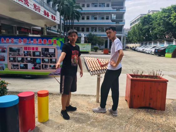 一安裝完成,寶源學(xué)子們便競(jìng)相近距離觀摩產(chǎn)品并試試看親自去敲擊演奏,而借助指導(dǎo)老師們的耐心教學(xué),每位學(xué)生便輕輕松松上手了這種新穎的“大玩具”。