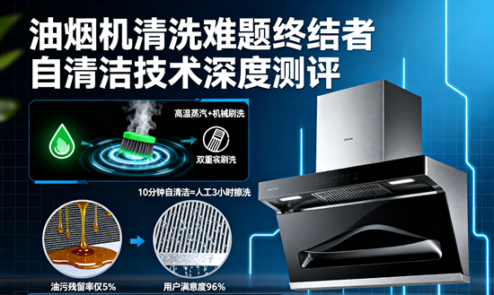 - 開放式廚房用戶反饋,蒸汽洗后煙機表面無明顯油漬殘留,廚房空氣質量提升顯著。