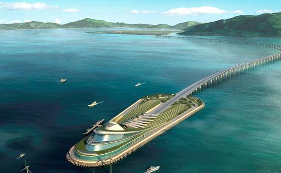 港珠澳大橋總長約55公里,它集橋、島、隧于一體。珠海公路口岸位于港珠澳大橋珠澳口岸人工島之上,是港珠澳大橋核心組成部分,總用地面積約107萬平方米,總建筑面積51萬平方米,是我國唯一的三地互通、客貨兼重的陸路口岸。項目于2013年12月31日正式開工,并于2017年9月30日實現“0”米層貫通。主要功能是對香港、澳門、珠海的出入境客、貨車及經三地過境的旅客進行通關查驗和旅客運輸。