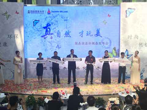 宣偉亞太區工業涂料事業部市場總監王海滴介紹說,水性漆在生產工藝層面,肯定是環保的。用在家庭中,水性漆首先就是沒有氣味,因為水性漆基本上沒有溶劑;第二個是水性漆很自然,對木器有很天然的保護,所以兩者的結合也是一種很自然的結合。