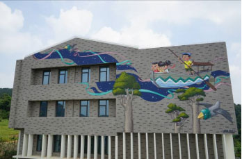 南京市兒童福利院兩幢主題建筑的灰墻是Kislow的絕佳畫板,他用畫筆一點點涂抹著瑰麗的童夢:大樹、飛鳥、銀河、繁星……精致的元素惟妙惟肖,令人浮想聯翩。而當談及作品寓意時,Kislow說道:比如我所展現的參天大樹,一顆樹就像一個生命體,有根、樹干和樹冠,就像我們的過去、現在和未來。過去是根變成了花草,樹干上的小鳥就像現在福利院里的孩子們,受到大樹的庇護?!皳﨣islow介紹,他非常喜歡中國的傳統文化,當他在逛夫子廟時看到了很具南京特色的騎馬樓和游船畫舫,于是他把這些一起融入進去,并在創作中加入一些古城墻的建筑特色,使墻繪細節之處具有濃厚的“南京味兒”。