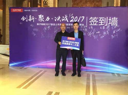 安徽揚子地板股份有限公司董事長兼總裁雷響先生、總工程師周玉剛先生、副總裁兼營銷中心總經理熊偉先生等領導,以及來自蘇浙皖三省市場的全體經銷商與部分導購精英,和甘肅、吉林、青海、北京、鄂爾多斯總代理共同出席會議,品鑒2017新品,共商發展大計。
