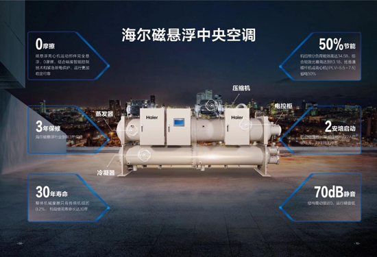 2006年海爾國內首推磁懸浮中央空調,采用無油壓縮機運轉技術,實現節能50%,成為中國最早進行磁懸浮變頻離心機生產研發企業。而彼時包括麥克維爾、江森自控約克在內的外資品牌依舊在國內中央空調大型項目上占據優勢地位。